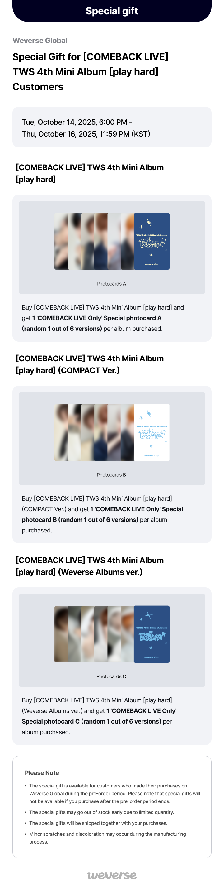 [Weverse Global] [COMEBACK LIVE] Special Gift for TWS 4th Mini Album [play hard] CustomersN