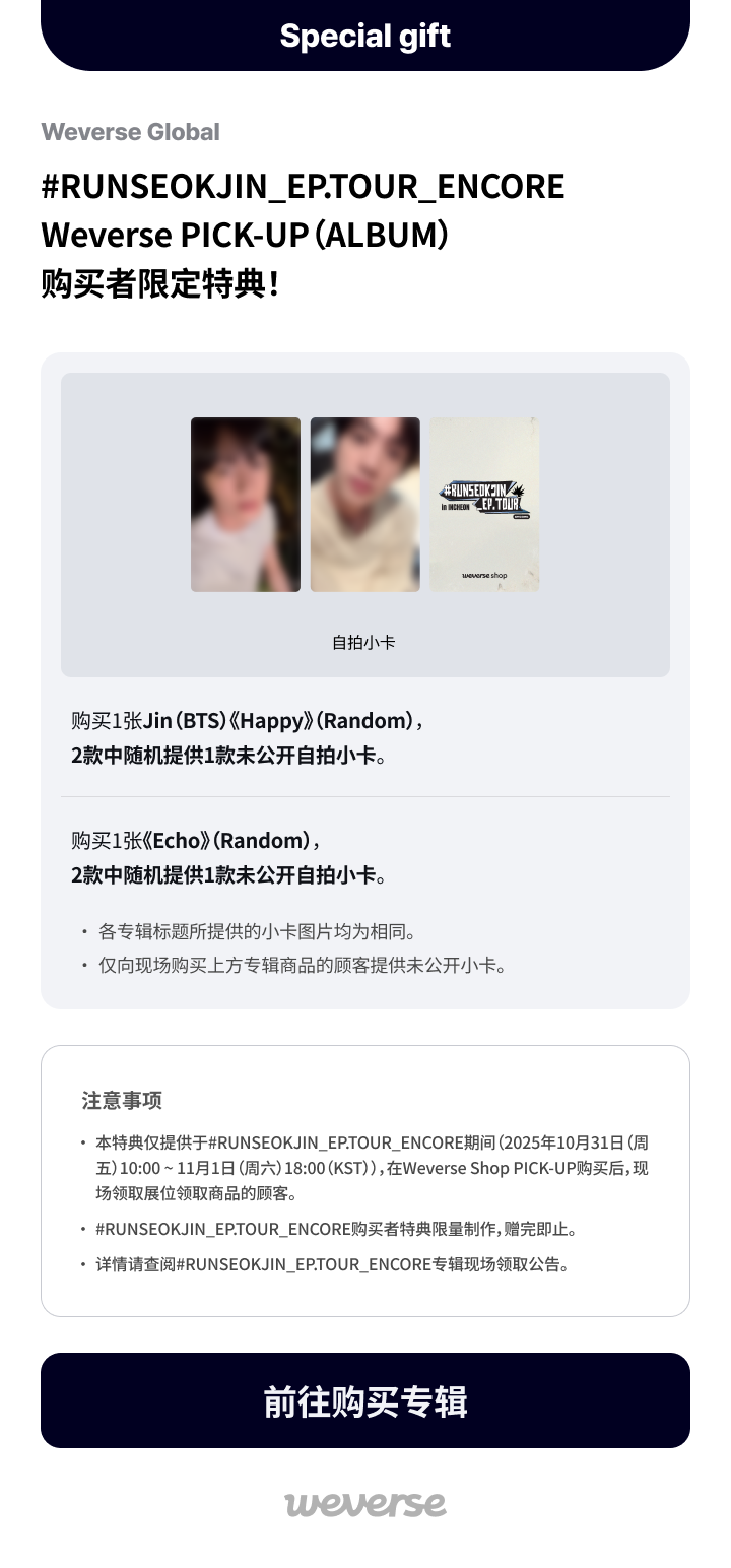 #RUNSEOKJIN_EP.TOUR_ENCORE Weverse PICK-UP(ALBUM)购买者限定特典!N