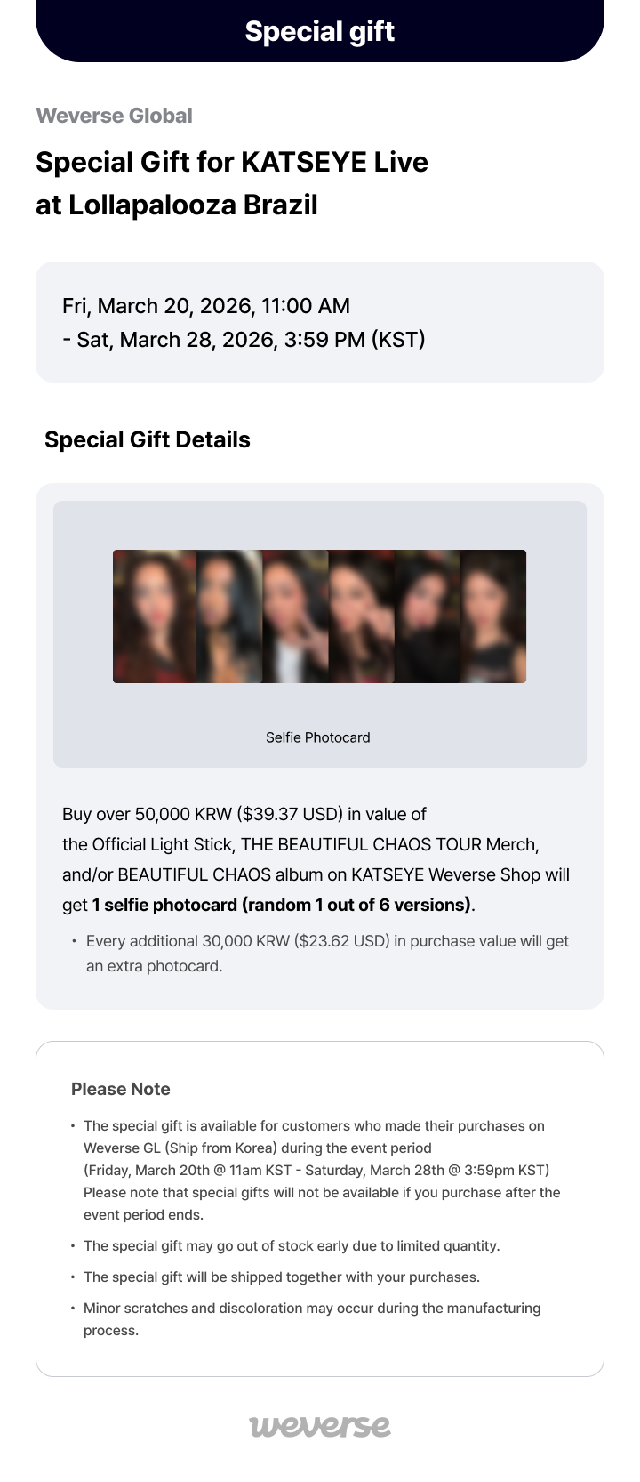 [Weverse Global] Special Gift for KATSEYE Live at Lollapalooza Brazil