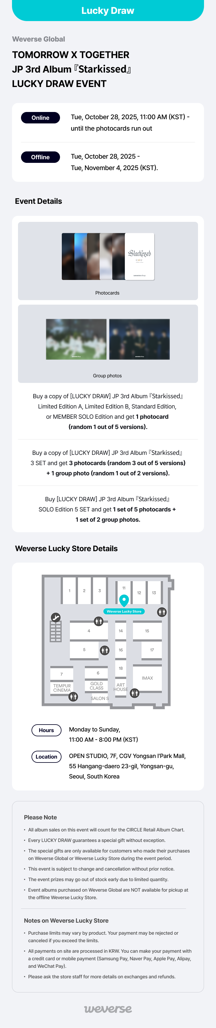 [Weverse Global] TOMORROW X TOGETHER JP 3rd Album 『Starkissed』 LUCKY DRAW EVENTN