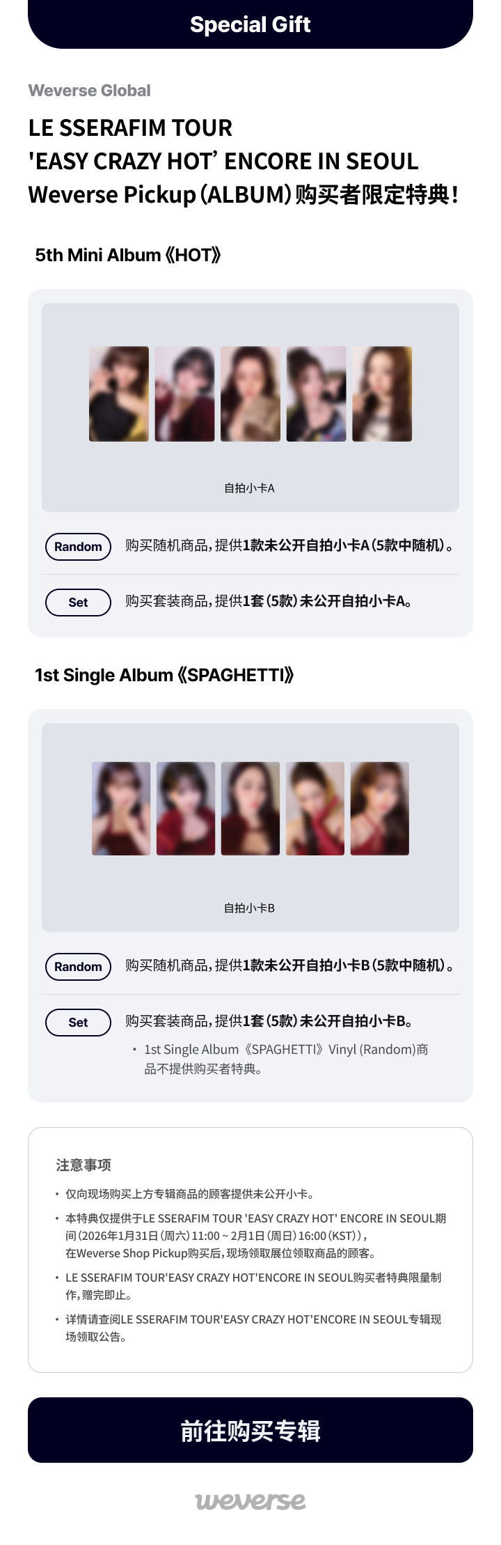 LE SSERAFIM TOUR【EASY CRAZY HOT】ENCORE IN SEOUL Weverse Pickup(ALBUM)购买者限定特典!