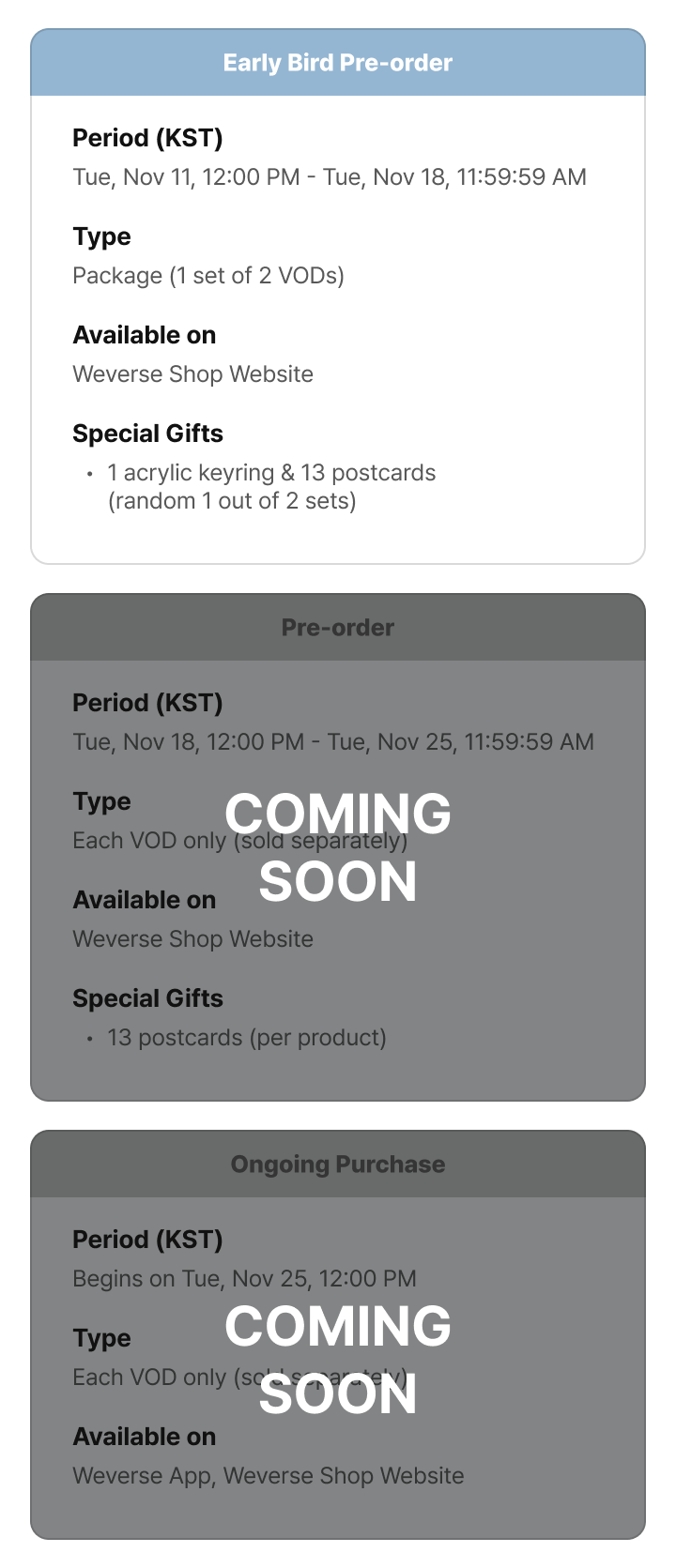 The content will be available for early-bird pre-order only on the Weverse Shop website. A special gift will be available to apply for if you purchase the content during the early-bird pre-order period.